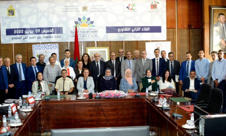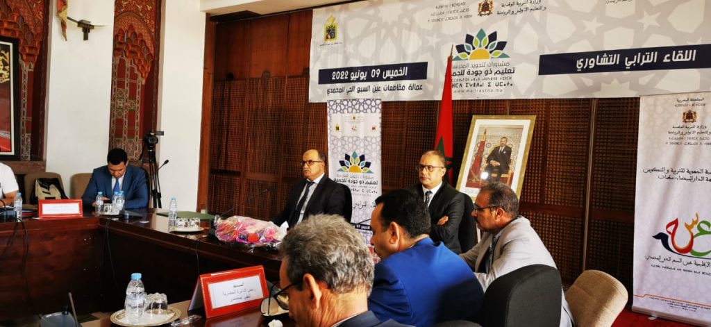 في إطار المشاورات الوطنية الموسعة لتجويد المدرسة التي أطلقتها وزارة التربية الوطنية والتعليم الأوليوالرياضة تحت شعار:”تعليم ذو جودة للجميع”، وتحت إشراف الأكاديمية الجهوية للتربية والتكوين لجهة الدار البيضاء سطات،وبتنسيق مع عمالة مقاطعات عين السبع الحي المحمدي، ترأس كل من السيد الكاتب للعمالة والسيد المدير الإقليمي فعاليات اللقاء الترابي التشاوري يوم الخميس 09 يونيو 2022 بمقر عمالة مقاطعات عين السبع الحي المحمدي.