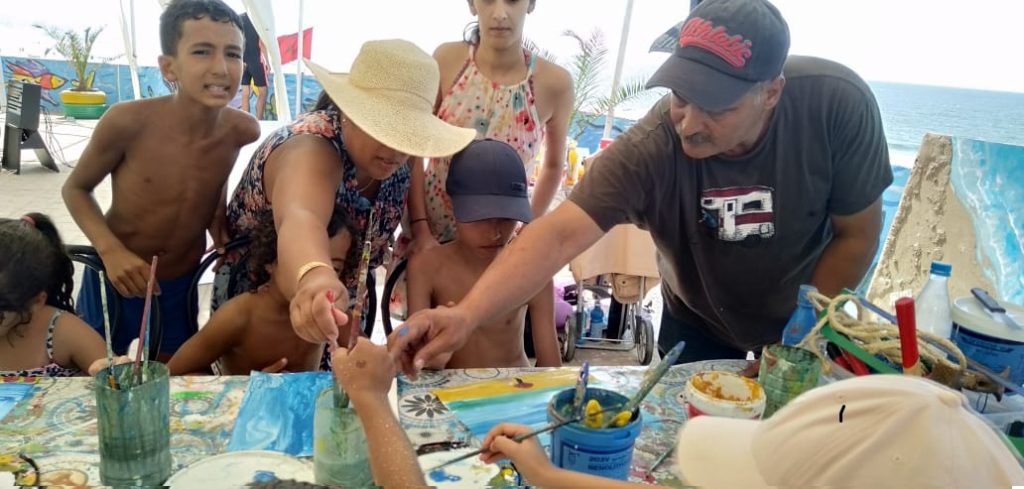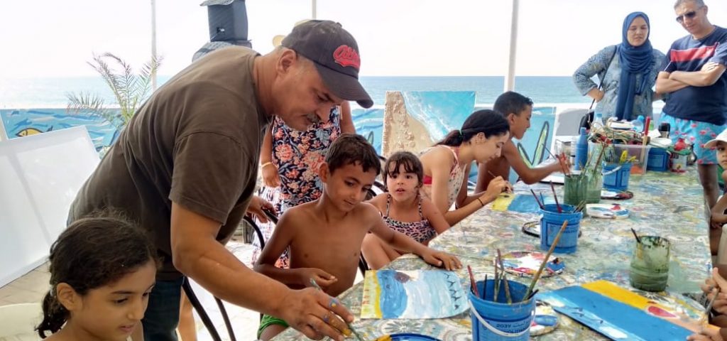 وتحرص “جمعية الأفق” التي يرأسها رضا عليوة، على إنجاز أعمال فنية ترقى بالملفوظ إلى التحفة، من خلال تحويل العلب البلاستيكية إلى أشكال هندسية جميلة، تماشيا مع شعار الشاطئ الموسوم ب”شاطئ بدون بلاستيك”، وأيضا بعض النفايات الصلبة المتمثلة في علب السردين، والمشروبات الغازية وغيرها التي يحولها الأطفال بتاطير من الفنانين التشكيليين المذكورين أعلاه إلى أعمال فنية راقية ومميزة يعرضونها أمام جمهور المصطافين بالشاطئ وأيضا بمقر الحمعية وباقي الفضاءات الأخرى، تحسيسا بأهمية الحفاظ على الماء وعلى نظافة الشواطئ. حيث يحولها هذا العمل الفني بفعل فلسفة الاشتغال على النفايات وإعادة التعامل معها بأسلوب فني يجعلها ترقى إلى التحفة الفنية، بعدما كانت مجرد متلاشيات لا قيمة لها وفي أغلب الأحيان مزعجة للبصر والنفوس.