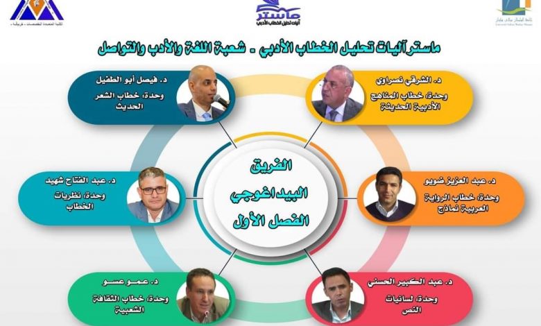 وبهذه المناسبة اشكر المنسق الدكتور الشرقي نصراوي وفريقه البيداغوجي المميز والراقي فكرا والسامي سلوكا.كما نشكر الفريق البيداغوجي الثاني”ماستر المتخصص،التواصل البيداغوجي وديداكتيك اللغة العربية.