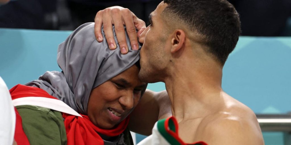 ونشر حساب كأس العالم FIFA، حينها، تعليقا عليها “حماس وأمومة وبُنُوة وقبلة مغربية في حب الوطن بعد الانتصار التاريخي أمام بلجيكا”، بعدما انتشرت صور ومقاطع فيديو لحكيمي وهو يعانق ويقبل والدته ويهديها قميصه.