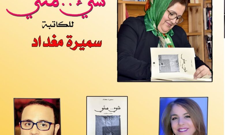 تنظم شبكة المقاهي الثقافية بالمغرب، حفل تقديم وتوقيع كتاب ” شيء .. مني ” للكاتبة والصحفية سميرة مغداد ، بمشاركة الإعلامية نادية أبرام في قراءة للكتاب ، والكاتب والصحفي عادل الزبيري في شهادة في حق المحتفى بها .