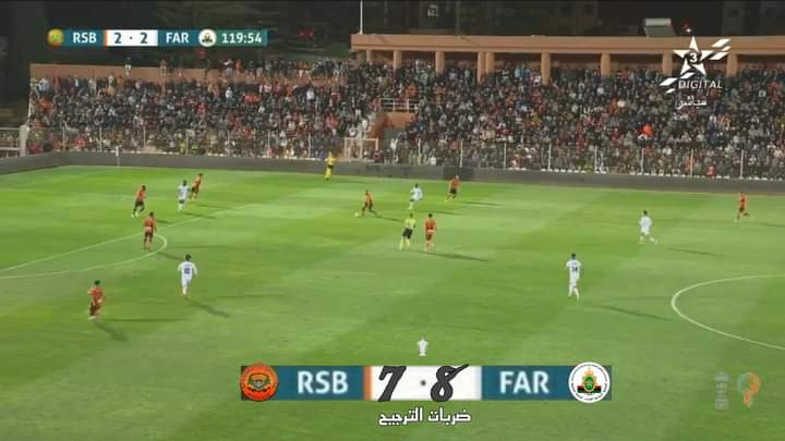 حقق الجيش الملكي بطاقة العبور إلى ثمن نهائي كأس العرش، بعد فوزه على مضيفه نهضة بركان بركلات الترجيح (7-8) في ملعب هذا الاخير، بعد انتهاء الوقت الأصلي والشوطين الإضافيين بالتعادل (2-2)، في المباراة التي جمعت بين الفريقين، مساء يومه الخميس، برسم مؤجل دور 16 النهائي.