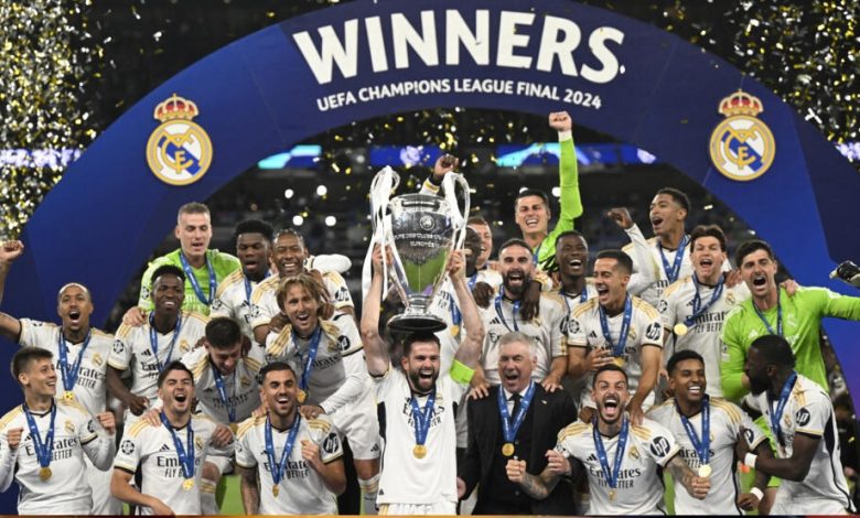 فاز نادي ريال مدريد الاسباني بلقبه الخامس عشر في دوري أبطال أوروبا لكرة القدم عقب تغلبه، مساء اليوم السبت بملعب ويمبلي بلندن، على بوروسيا دورتموند الالماني 2-0.