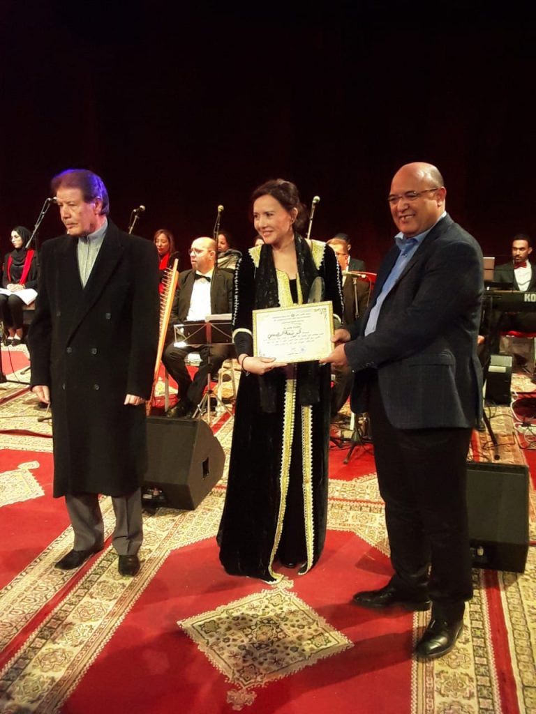 وجاء هذا التكريم الراقي والجميل، الذي احتضنه المسرح الملكي، في ختام فعاليات النسخة 11 من المهرجان الوطني للمواهب الشابة المتمدرسة للموسيقى والغناء، التي حملت اسمها.
