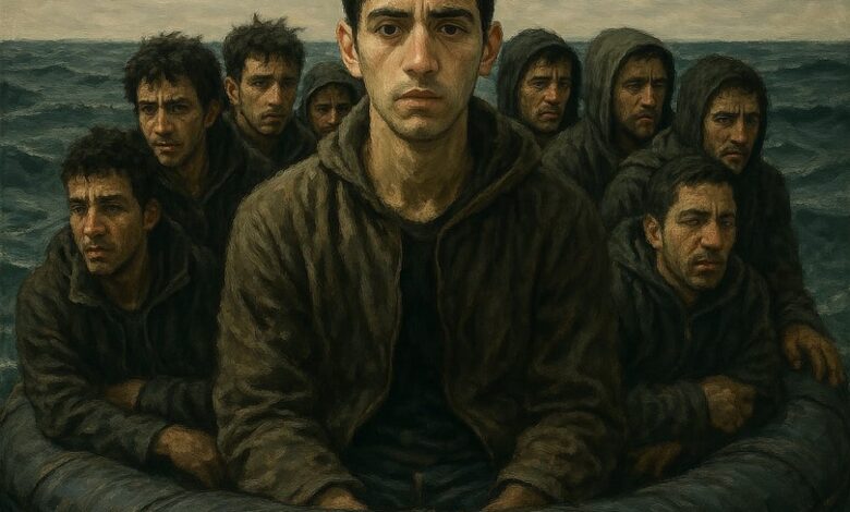 في منتصف الطريق، رأيت وجه أمي في الموج، تلوّح لي بيدٍ مبللة بالملح. لم أصرخ، لم أبكِ، فقط همست: يما…. لا املك حيلة.. سامحيني”