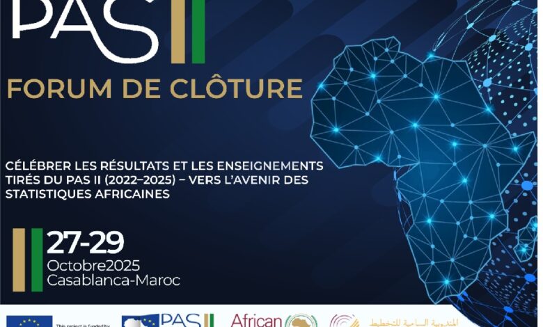 ويعقد هذا المنتدى، الذي يستمر على مدى ثلاثة أيام تحت شعار “الاحتفاء بالنتائج والدروس المستفادة من PAS II (2022–2025) – نحو مستقبل الإحصاءات الإفريقية”، موازاة مع اليوم الأفريقي للإحصاء، الذي يحتفل به في 18 نونبر المقبل.