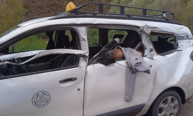 سيارة الأجرة كانت قادمة من جماعة أمكدال قبل أن تصطدم بالشاحنة في ظروف ما تزال موضوع تحقيق من قبل مصالح الدرك الملكي.