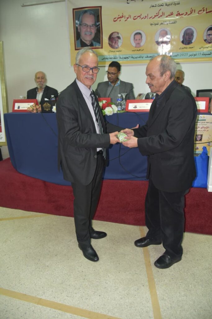 كرّم معهد صروح للثقافة والإبداع بفاس الأديب والإعلامي إدريس الواغيش، ونظّم بهذه المناسبة ندوَة فكريّة تحت عنوان: “الأنسَاق الأدبية عند الدكتور إدريس الواغيش- القصة والشعر نموذجًا”.