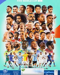 و تصدر القائمة الظاهرة في البوستر، نجوم عالميون مثل الأرجنتيني ليونيل ميسي، الفائز بكأس العالم الأخيرة، و أشرف حكيمي،والمصري محمد صلاح، إضافة إلى الفرنسي كيليان مبابي والنرويجي إيرلنغ هالاند وغيرهم من الأسماء البارزة التي تمثل مختلف القارات.