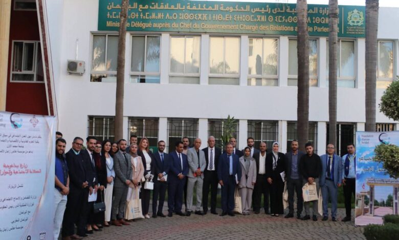 دائما وفي إطار الانفتاح والتواصل مع المؤسسات الحكومة، قام طلبة الماستر بزيارة ثانية إلى الوزارة المنتدبة لدى رئيس الحكومة المكلفة بالعلاقات مع البرلمان، زيارة مكنت الطلبة من معرفة آليات التنسيق المؤسساتي و عمل فعاليات المجتمع المدني، ومسارات التشريع، وتقاطعات العمل البرلماني مع مهتلف قضايا التنمية الاجتماعية من خلال عرض قيم قدمه السيد حميد بنشريفة مدير العلاقات مع المجتمع المدني.