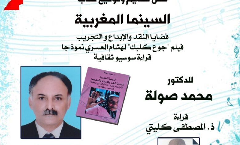 ” السينما المغربية قضايا النقد والإبداع والتجريب فيلم “جوع كلبك” لهشام العسري نموذجا ” قراءة سوسيو ثقافية للدكتور محمد صولة ، وذلك بالمقهى الثقافي لاسامير بسيدي قاسم في الساعة 11صباحا .