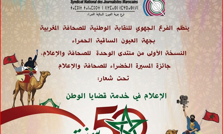 و تستضيف مدينة العيون التي ارتأى “منتدى الوحدة” إلا أن يُعلي صوت الترافع الوطني في الأقاليم الجنوبية في الفترة ما بين فاتح و 05 دجنبر 2025، بإشراك خبراء وباحثين يساهمون في تعميق النقاش حول دور الإعلام في التنمية الشاملة والترافع عن القضايا الوطنية، وفي مقدمتها قضية الصحراء المغربية و تنظم فعاليات “منتدى الوحدة للصحافة والإعلام – جائزة المسيرة الخضراء للصحافة والاعلام”، تحت شعار “الإعلام في خدمة قضايا الوطن”. والذي سيحضره، والي الجهة، و عمدة مدينة العيون، ورئيس جهة العيون الساقية الحمراء، و رئيس النقابة الوطنية للصحافة المغربية عبد الكبير أخشيشن، إضافة إلى رئيسة الفرع الجهوي النعمة الداودي.