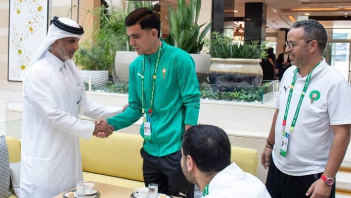الشيخ حمد بن خليفة آل ثاني يزور بعثة المنتخب المغربي في الدوحة