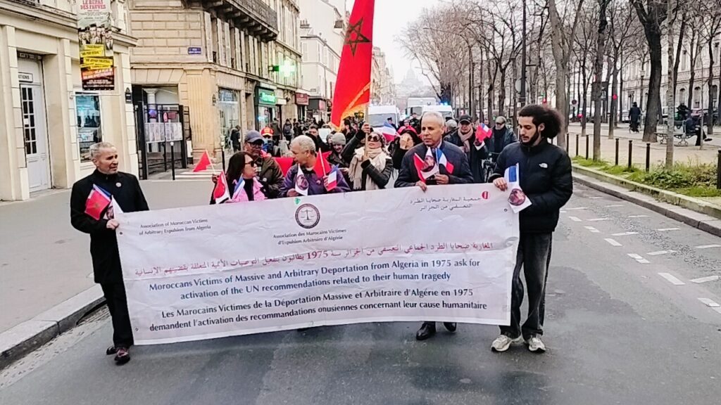 نظمت جمعية المغاربة ضحايا الطرد التعسفي من الجزائر بشراكة وتعاون وتنسيق مع فيدرالية المغاربة المقيمين بالخارج FMRE مسيرة صامتة وسط العاصمة الفرنسية باربس، السبت 13 دجنبر الجاري، تحت شعار:” من أجل حفظ الذاكرة الجماعية والكرامة لضحايا المسيرة السوداء – دجنبر 1975 ”