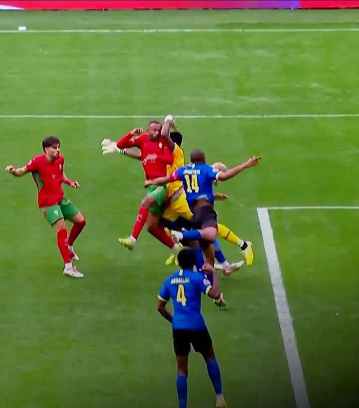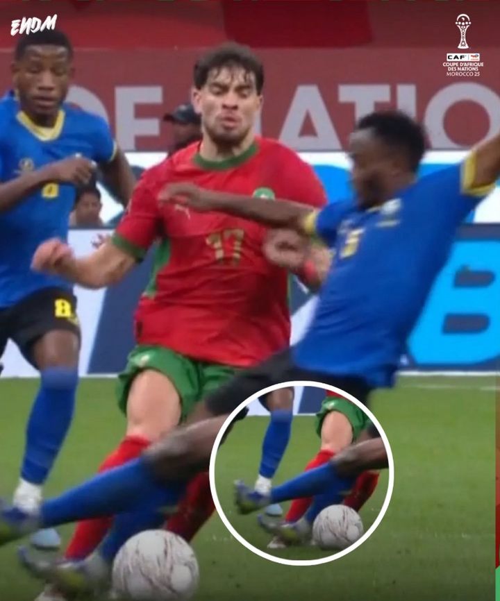 في اللقطة التي طالب على إثرها بعض الجمهور باحتساب ضربة جزاء لصالح المنتخب المغربي، تظهر الإعادات أن الاحتكاك بين ماسينا والمدافع التنزاني كان خفيفا وطبيعيا دون وجود دفع واضح أو مد للساق أو استخدام غير مشروع للذراع.