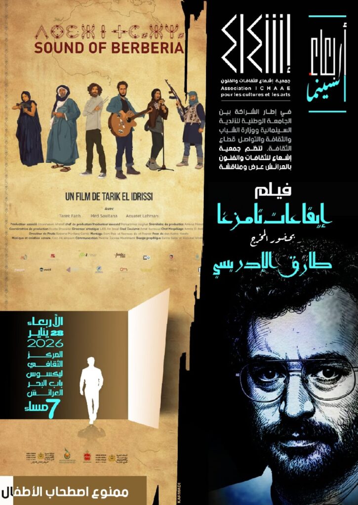 أعلنت جمعية إشعاع للثقافات والفنون بالعرائش عن تنظيم عرض ومناقشة للفيلم الوثائقي “إيقاعات تامزغا” للمخرج طارق الإدريسي، وذلك يوم الأربعاء 28 يناير 2026 على الساعة السابعة مساءً بالمركز الثقافي ليكسوس باب البحر، ضمن فقرة “أربعاء السينما” التي تدخل موسمها الثاني.