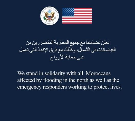 أعربت البعثة الدبلوماسية للولايات المتحدة بالمغرب عن تضامنها المطلق مع الأسر المغربية المتضررة من الفيضانات التي اجتاحت أقاليم الشمال، مشيدة بالجهود الاستثنائية التي تبذلها فرق الإنقاذ والتدخل السريع لحماية الأرواح.