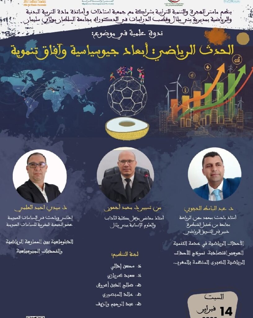 خبراء يناقشون “الحدث الرياضي..أبعاد جيوسياسية وآفاق تنموية” في جامعة بني ملال