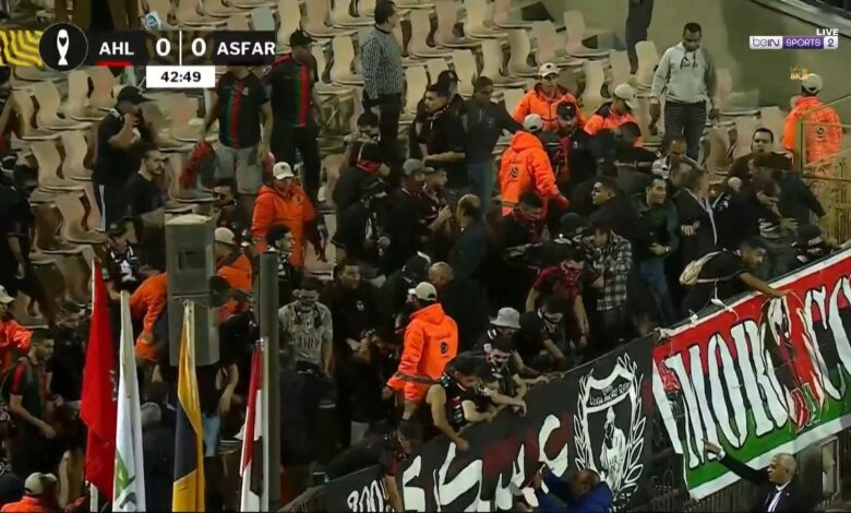 شهدت مدرجات مباراة الجيش الملكي أمام الأهلي المصري بملعب ستاد القاهرة الدولي أحداثاً مؤسفة، بعدما تعرضت جماهير الفريق العسكري لاعتداءات متكررة.