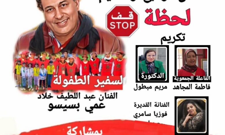 وسيشهد الحفل حضور نخبة من الفاعلين الثقافيين والفنيين لتكريم الفنان عبد اللطيف خالد “عمي بيسيسو”، الملقب ب”سفير الطفولة” تقديراً لعطائه الفني والتربوي في مجال مسرح الطفل.