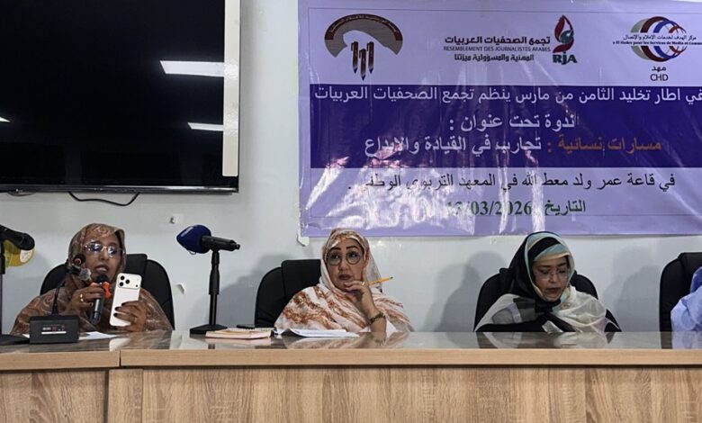 في أجواء فكرية وثقافية نابضة بالحياة، احتضنت العاصمة الموريتانية نواكشوط مساء أمس الجمعة ندوة مميزة بعنوان “مسارات نسائية: تجارب في القيادة والإبداع”، نظّمها تجمع الصحفيات العربيات احتفاءً باليوم العالمي للمرأة، لتتحول الأمسية إلى منصة عربية تحتفي بالريادة النسائية وتكرّس حضور المرأة في فضاءات الفكر والإعلام والإبداع.
