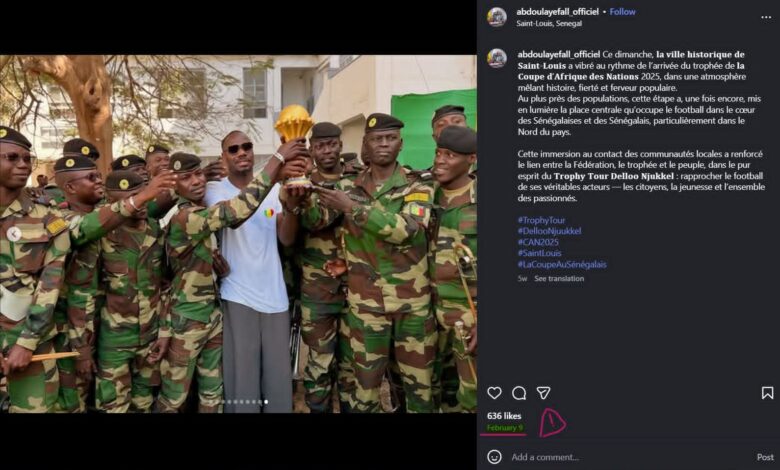 الحقيقة أن الصورة المتداولة منشورة منذ 9 فبراير الماضي، خلال جولة رمزية لكأس أمم إفريقيا 2025 في مدينة Saint-Louis، في إطار ما يعرف بـ Trophy Tour Delloo Njukkel، ولم تكن مرتبطة بأي رفض رسمي أو خطوة استثنائية من السلطات السنغالية.
