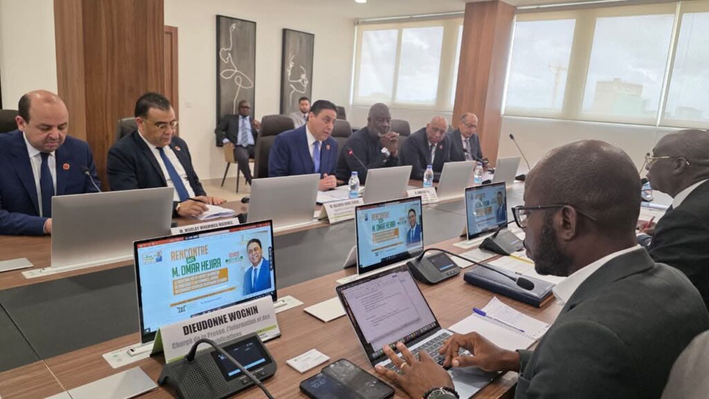 تنفيذا لبرنامج التجارة الخارجية 2025-2027 في المحور الخاص بتعزيز العلاقات الاقتصادية والتجارية والرفع من أرقام المبادلات التجارية بين المغرب وشركائه في القارة الإفريقية ، عقد كاتب الدولة المكلف بالتجارة الخارجية عمر حجيرة، يوم الثلاثاء 24 مارس 2026 بأبيدجان ، سلسلة من اللقاءات مع مسؤولين إيفواريين، في الكونفدرالية العامة للمقاولات الإيفوارية، غرفة التجارة الإيفوارية، تصدير كوت ديفوار ومركز تنمية الإستثمارات كوت ديفوار.