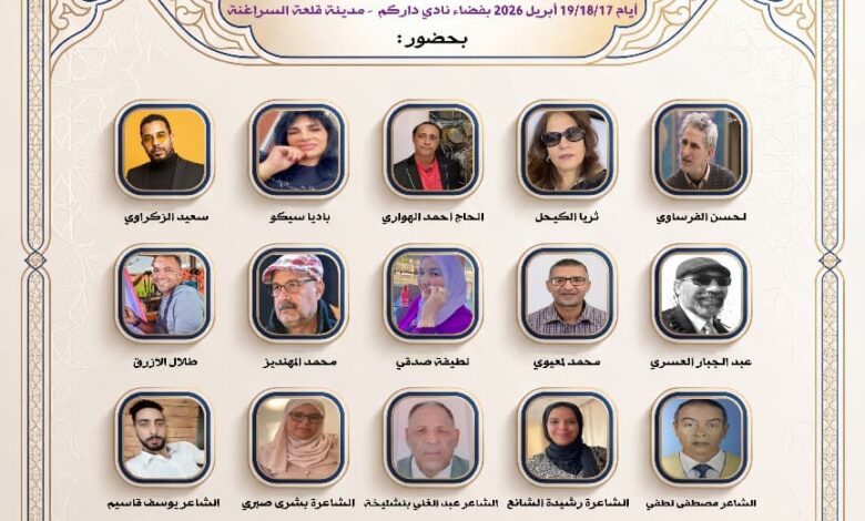 ومن المنتظر أن يشكل المهرجان مساحة للمزج بين الفنون، حيث سيتم رسم لوحة تشكيلية جماعية بعنوان “عذراً أبت” تحاول ملامسة التناغم بين إيقاع الشعر ونغمات الموسيقى. وتتويجاً لهذه التظاهرة، سيشهد البرنامج وقفة اعتراف وتكريم خاصة لعامل إقليم قلعة السراغنة، تقديراً لمجهوداته في دعم الحراك الثقافي والإبداعي بالمنطقة.