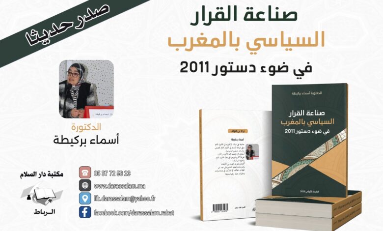 في إصدار أكاديمي جديدصدر حديثا عن دار السلام للطباعة والنشر والتوزيع بالرباط كتاب جديد للدكتورة أسماء بركيطة، الأستاذة الزائرة بجامعة محمد الأول، تحت عنوان: “صناعة القرار السياسي بالمغرب في ضوء دستور 2011″، في إطار الإسهامات العلمية الرامية إلى فهم هندسة النظام السياسي المغربي وتحليل آليات اشتغاله.ويقدّم هذا العمل قراءة تحليلية معمّقة لمرتكزات صناعة القرار السياسي بالمغرب، مع تركيز خاص على البعد التقليدي الذي يكرّس خصوصية النظام السياسي الوطني، حيث يسلّط الضوء على الدور المحوري للمؤسسة الملكية في توجيه القرار السياسي، إلى جانب إبراز الجهود المبذولة لتحديث النظام السياسي، رغم استمرار حضور الخصوصية كعنصر بنيوي مميز.