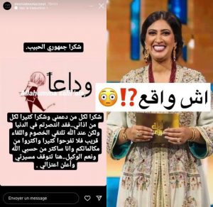 ويرجح متتبعي الفنانة المثيرة للجدل، أن سبب إعتزالها هو عملها الرمضاني الأخير “سلسلة المكتوب ” (الشيخة)، ويشار إلى أن الفنانة المغربية دنيا بوطازوت هي من قدمت النسخة الحالية من برنامج “لالة العروسة”، والذي يعرض على القناة الأولى.