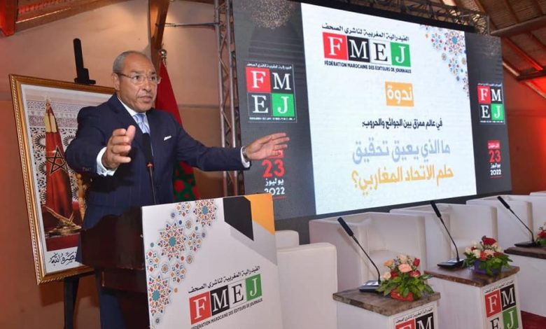 وشددت الفيدرالية المــــــغربية لناشري الصحف التي أعلنت دائما أنها ليست محايدة في القضايا الوطنية لتعتبر المس بالوحدة الترابية عملا مدانا واستهدافا ليس للمغرب فقط ولكن لهذا الحلم المغاربي الوحدوي الذي لا يمكن أن يبنى على التقسيم والتفتيت والمناورة.
