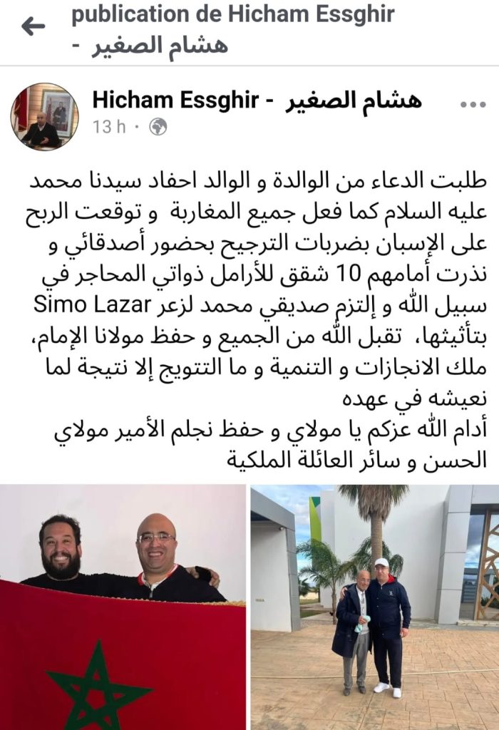 توقع هشام الصغير رئيس مجلس عمالة وجدة الأسبق، أن يفوز أسود الأطلس ب3-0 في الضربات الترجيحية على خصمه المنتخب الاسباني، وطلب من والديه الدعاء للفريق من أجل الانتصار، حدث هذا أمام بعض أصدائه، يؤكد هشام الصغير في تدوينة له على صفحته الرسمية في الفيس بوك، ونذر عشر (10) شقق للأرامل ذواتي المحاجر، وتكلف يضيف هشام الصغير، صديقه محمد لزعر بتأثيثهم.