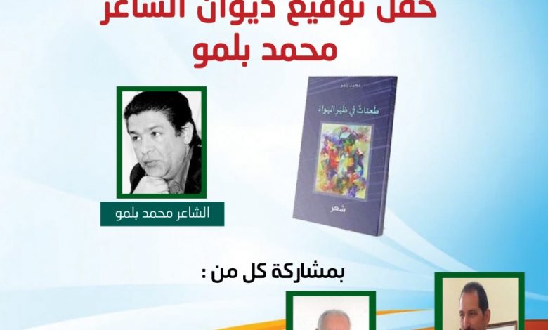 يواصل الشاعر محمد بلمو جولة توقيع كتابه الشعري الرابع “طعنات في ظهر الهواء”، الصادر ضمن منشورات جمعية الفكر التشكيلي أواخر سنة 2019. فبعد محطات فاس والرباط وسيدي يحيى وطنجة، يحط الشاعر الرحال بمدينة مكناس، يوم السبت 22 يناير الجاري في ضيافة جمعية رحاب الإسماعيلية للملحون والموسيقى التراثية.