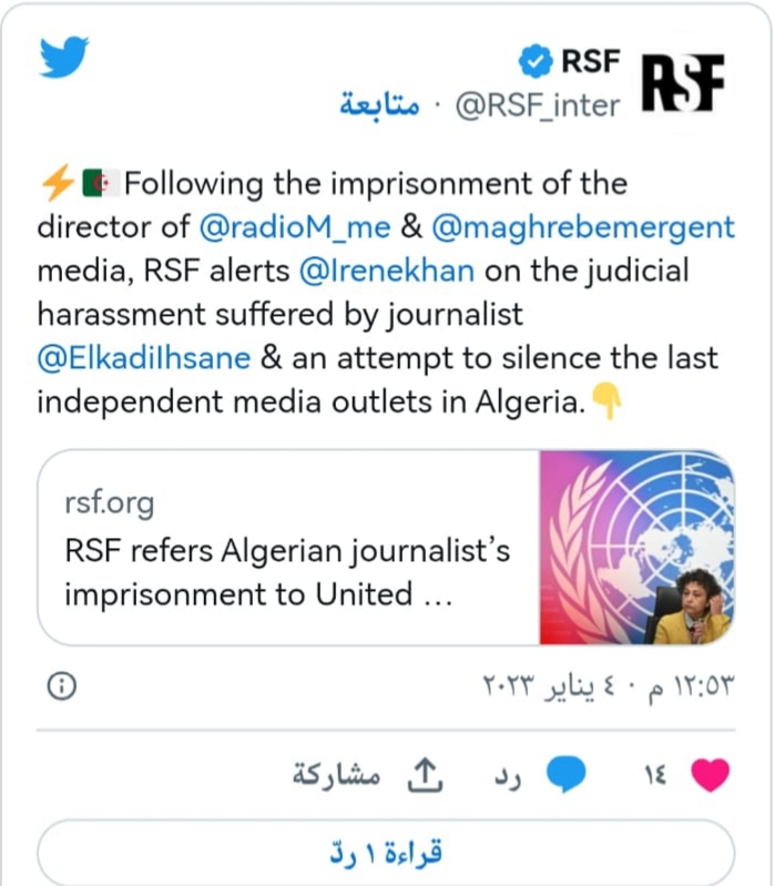 “مراسلون بلا حدود” تشتكي الجزائر للأمم المتحدة”