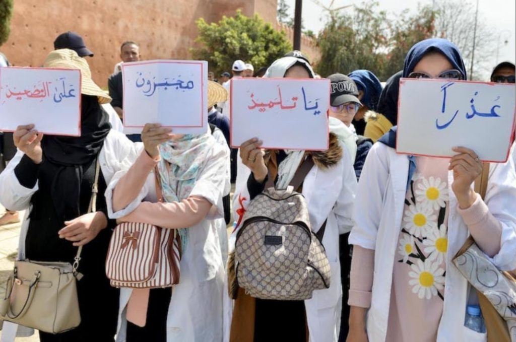 ولا حديث في المجالس العائلية إلا عن إضرابات واحتجاجات أساتذة التعليم العمومي، ويتفاقم غضب الأمهات والآباء، بسبب ضبابية المشهد، ويظهر هذا الغضب في النقاش الدائر بمواقع التواصل الاجتماعي، والذي انتقل إلى الواقع على شكل وقفات احتجاجية نظمها الآباء والأمهات مع أبنائهم أمام المدارس في الكثير من المدن.
