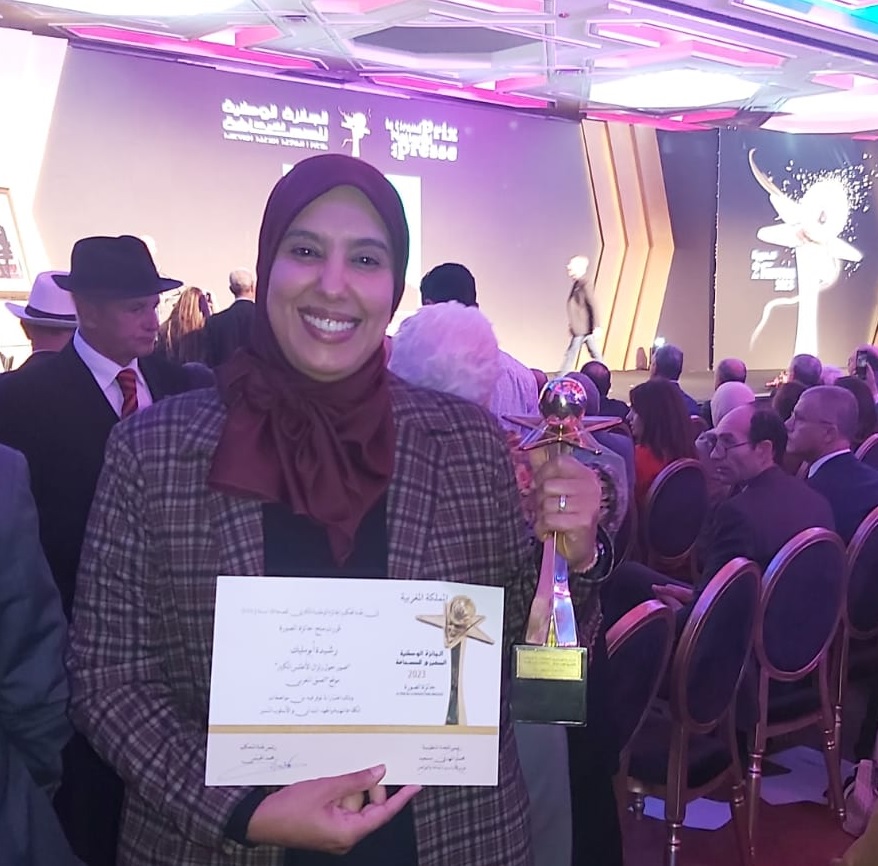 وفي نفس السياق، لابد من أن أشير إلى التتويج الذي حصلت عليه زميلتي رشيدة أبومليك في أمسية الجائزة الوطنية الكبرى للصحافة في صنف الصورة عن الجريدة الإلكترونية “العمق المغربي”، لأنه الصحافية رشيدة أبومليك هي بدورها عصامية تدرجت بثبات وهي تلج أول مرة رحاب صاحبة الجلالة؛ مهنة المتاعب سنة 2005، حين استقبلتها “أسبوعية السلام” التي كان يديرها الصحفي عبدالسلام العزوزي، قادمة للتو من رحاب الجامعة، وأبانت عن شغفها بالصحافة ونبل أخلاقها.