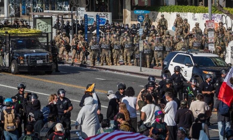 وفي سياق متصل، لجأ حاكم كاليفورنيا الديمقراطي، غافين نيوسوم، إلى القضاء للمطالبة بتقييد مؤقت لعمل القوات العسكرية، بحيث يقتصر دورها على حماية المباني الفدرالية في لوس أنجلوس، دون أية مسؤوليات أخرى في مجال تطبيق القانون. كما طلب نيوسوم من المحكمة منع الجنود من مرافقة موظفي شرطة الهجرة والجمارك في مداهمات اعتقال المهاجرين غير القانونيين. ومن المقرر عقد الجلسة الأولى للمرافعات في وقت لاحق من ظهر اليوم الخميس.