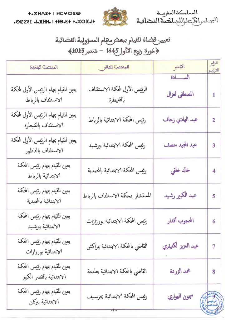 الرئيسية/أخبار/اللائحة الكاملة للمسؤولين القضائيين الذين وافق الملك على تعيينهم أخبارالأنشطة الملكيةقضاء وقانون اللائحة الكاملة للمسؤولين القضائيين الذين وافق الملك على تعيينهم الحدث الإفريقي Send an email 29 يناير، 20240 أقل من دقيقة Facebook X LinkedIn Pinterest Reddit Messenger Messenger WhatsApp Telegram انشر عبر البريد الإلكتروني وسومالمجلس الاعلى للسلطة القضائية قانون قضاء محاكم الحدث الإفريقي Send an email 29 يناير، 20240 أقل من دقيقة Facebook X LinkedIn Pinterest Reddit Messenger Messenger WhatsApp Telegram انشر عبر البريد الإلكتروني انشر Facebook X LinkedIn Pinterest Reddit Messenger Messenger WhatsApp Telegram انشر عبر البريد الإلكتروني اطبع