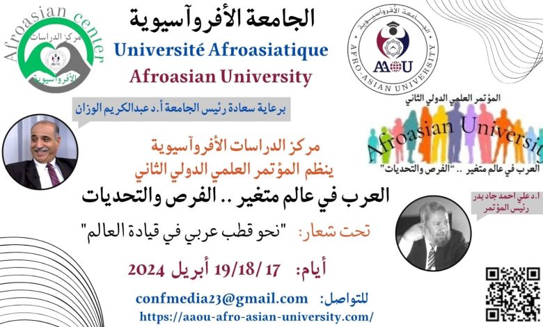 بعد الإعلان عن المؤتمر العلمي الدولي الثاني للجامعة الأفروآسيوية الذي تقرر عقده شهر أبريل المقبل، حول موضوع “العرب في عالم متغير ..الفرص والتحديات” وتحت شعار “نحو قطب عربي في قيادة العالم، اجرت إدارة الإعلام والعلاقات العامة بالجامعة، حوارا مع الأستاذ الدكتور علي أحمد جاد بدر، رئيس المؤتمر ومدير مركز الدراسات الأفروآسيوية المنظم لهذا المؤتمر المهم لمستقبل مجتمعاتنا العربية. حيث يعتبره الدكتور علي أكبر من مجرد مؤتمر علمي بل مشروع نهضوي فكري حداثي، يعيد الأمة العربية إلى مصاف الحضارات الكبرى، هذا نص الحوار.