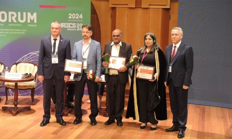 كما سلمت الحائزة بعد ذلك الى البروفيسور Prabhakar Rao Jandahyala.. عميد كلية الإنسانيات بجامعة حيدر آباد بالهند و عضو مكتب IFAP UNESCO، إضافة إلى احد أعضاء لجنة IFAP UNESCO بروسيا.