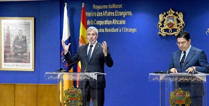 وقال كلافيجو خلال مؤتمر صحافي مشترك مع وزير الخارجية المغربي ناصر بوريطة إن “جزر الكناري حريصة على تعزيز العلاقات الجيدة مع المغرب وفتح فصل جديد من التعاون في مختلف المجالات الاقتصادية، التجارية، والثقافية”. وأضاف أن الكناري تدعم بشكل كامل الموقف الإسباني الذي يعتبر الحكم الذاتي الحل الأمثل للنزاع في الصحراء وفقا للسياسة الجديدة التي انتهجتها مدريد في السنوات الأخيرة.