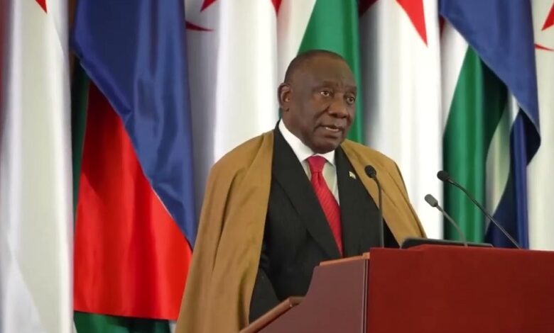الشعوب الإفريقية كانت تنتظر من السيد سيريل رامافوزا أن لا يغض الطرف على جرائم ضد الإنسانية شبيهة بجرائم نظام الأبارتايد العنصري تقع على بعد مئات الأميال من الجزائر العاصمة و أن يتحدث عن الوضعية المأساوية التي يعيشها عشرات الآلاف من المحتجزين الأفارقة في مخيمات تندوف السيئة السمعة التي تحولت إلى أكبر سجن في التاريخ الإنساني منذ أكثر من 50 سنة حيث تمارس في حق المحتجزين كل أنواع التنكيل و القتل و الإحتجاز و الحرمان من الحقوق السياسية و الإقتصادية و الإجتماعية بتواطئ مع النظام الشمولي الجزائري الذي يوفر لقادة هذه الميليشيا الإرهابية كل انواع الدعم السياسي و الديبلوماسي و المادي و العسكري من أجل خدمة المشروع البومديني للهيمنة على مقدرات الشعوب الإفريقية بعد بناء وهم الدولة الجزائرية الكبرى الممتدة من صحراء سيوة إلى المحيط الأطلسي .