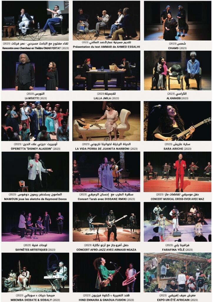 وفي إطار الاحتفال بـ”الرباط عاصمة الثقافة الإفريقية”، وضمن انفتاحه على الأبعاد المغربية، الأمازيغية، الصحراوية والإفريقية، نظم مسرح رياض السلطان فعالية “صيف إفريقي” بدعم من ولاية جهة طنجة-تطوان-الحسيمة، ووكالة تنمية أقاليم الشمال، وبالتعاون مع جمعية “طنجة: فضاء العمل الثقافي” من 7 إلى 28 يوليو 2023.
