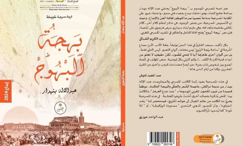 بنفس كتابي طويل وأفق إبداعي رحب، يواصل للكاتب المسرحي والسيناريست عبدالإله بنهدار ابداعاته المسرحية بإصداره لنصر المسرحيٌّ الجديدٌ، الذي يحتل الرتبة رقم عشرة، في تجربته المتميزة، وموسوم بـــعنوان “بهجة البهوج “.