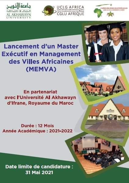 يُشرف على تنظيم هذا التكوين جامعة الأخوين بإفران بدعم من ALGA الأكاديمية الإفريقية للجماعات الترابية وCGLU-Afrique منظمة المدن والحكومات المحلية المتحدة الإفريقية. وحظي هذا المشروع بدعم مالي من الصندوق الإفريقي لدعم التعاون الدولي اللامركزي الذي أنشأته وزارة الداخلية – المديرية العامة للجماعات الترابية وكذا دعم جهة الرباط سلا القنيطرة والجهات الإفريقية الشريكة.