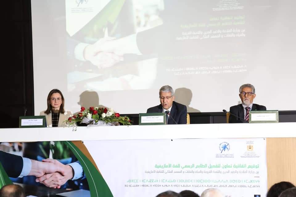 وأشار محمد صديقي في كلمته بالمناسبة، أن الوزارة اتخذت مجموعة من الإجراءات للتنزيل الفعلي لما تم التنصيص عليه في مجال اللغة الأمازيغية، بحيث تمت برمجة دورات تكوينية لفائدة شريحة مهمة من الموظفين بهدف تأهيلهم للتواصل مع المرتفقين الناطقين باللغة الأمازيغية في إطار وحدات متخصصة، كما تم إحداث خلية مركزية لتتبع تنزيل المخطط الحكومي المندمج لتفعيل الطابع الرسمي للأمازيغية على مستوى الوزارة، فضلا عن مجموعة من الخطوات العملية لإدراج اللغة الأمازيغية في مختلف المجالات ذات الصلة بالمهام والوظائف المسندة للوزارة.