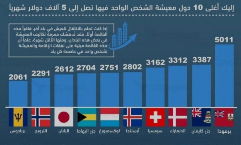 10 دول الأغلى كلفة معيشتها بين ألفين و5 آلاف دولار شهرياً