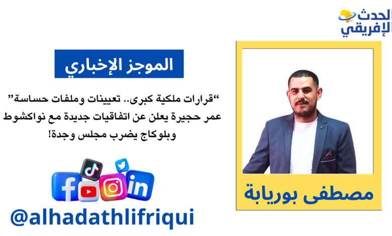 الرئيسية/Hot events/قرارات ملكية كبرى.. تعيينات وملفات حساسة” عمر حجيرة يعلن عن اتفاقيات جديدة مع نواكشوط، وبلوكاج يضرب مجلس وجدة! Hot eventsأخبارأخبار سريعةإفريقياالأنشطة الملكيةالحدث تيفي TVالناس و الحياةجهات المملكةقضاء وقانونمجتمع قرارات ملكية كبرى.. تعيينات وملفات حساسة” عمر حجيرة يعلن عن اتفاقيات جديدة مع نواكشوط، وبلوكاج يضرب مجلس وجدة! الحدث الافريقي _ مصطفى بوريابة Send an email 13 ماي، 20250 أقل من دقيقة Facebook X LinkedIn Pinterest Reddit Messenger Messenger WhatsApp Telegram انشر عبر البريد الإلكتروني الحدث الافريقي _ مصطفى بوريابة Send an email 13 ماي، 20250 أقل من دقيقة Facebook X LinkedIn Pinterest Reddit Messenger Messenger WhatsApp Telegram انشر عبر البريد الإلكتروني انشر Facebook X LinkedIn Pinterest Reddit Messenger Messenger WhatsApp Telegram انشر عبر البريد الإلكتروني اطبع