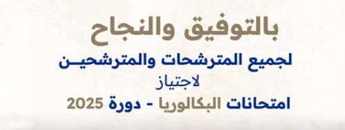 رسالة إلى جميع المترشحين: بالتوفيق والنجاح في امتحاناتكم! كل التعب والجهد الذي بذلتموه سيؤتي ثماره بإذن الله.