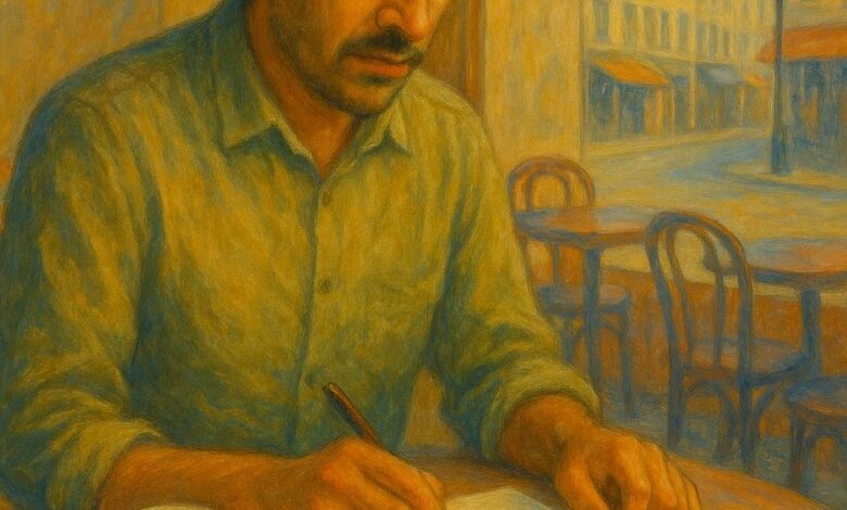 وبعد عشرة أيام، يجلس وحيدًا بالمقهى في الحي اللاتيني…